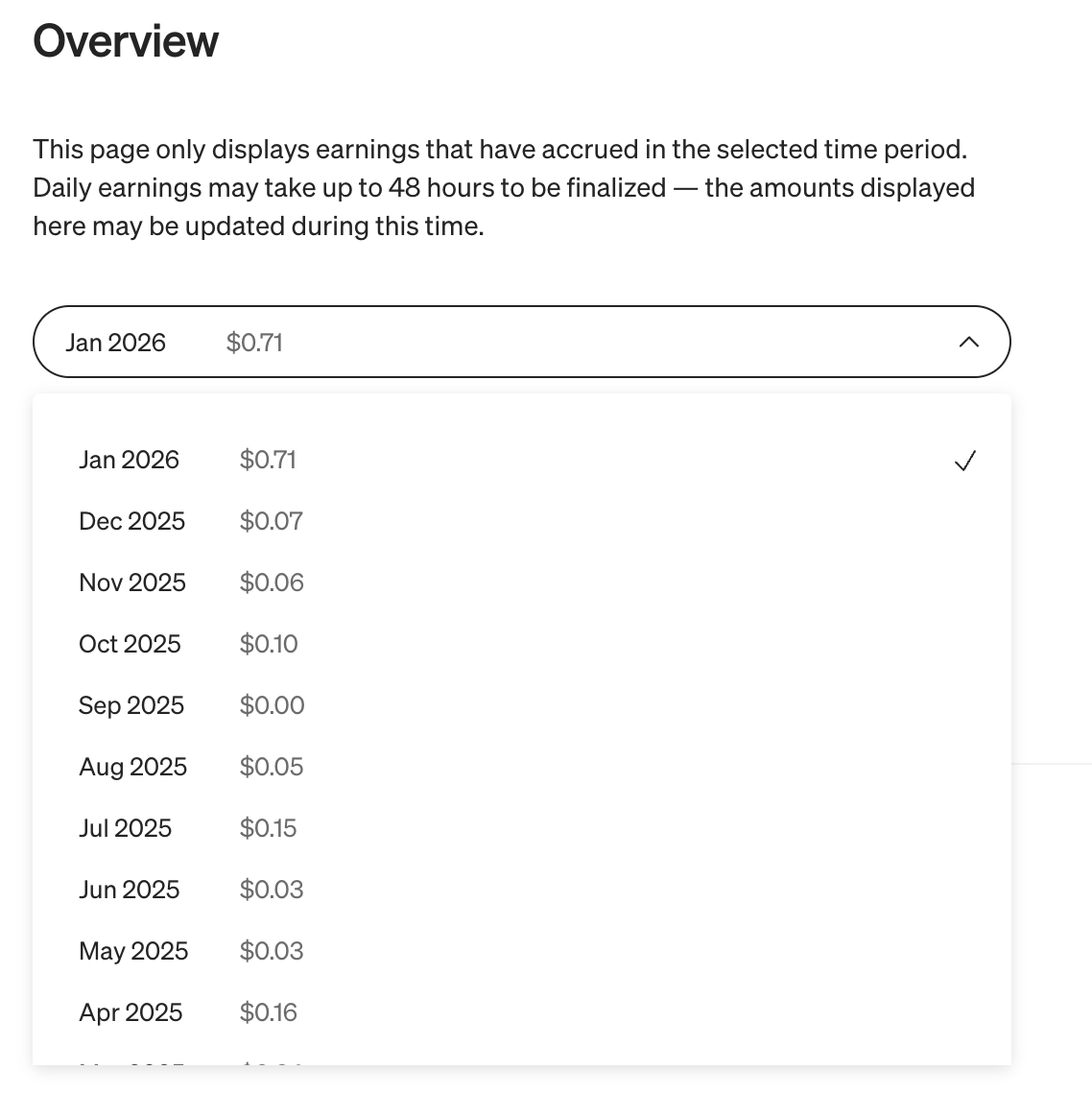 收益是……赚个几毛钱吧。然后每月会员费用是五块钱……
