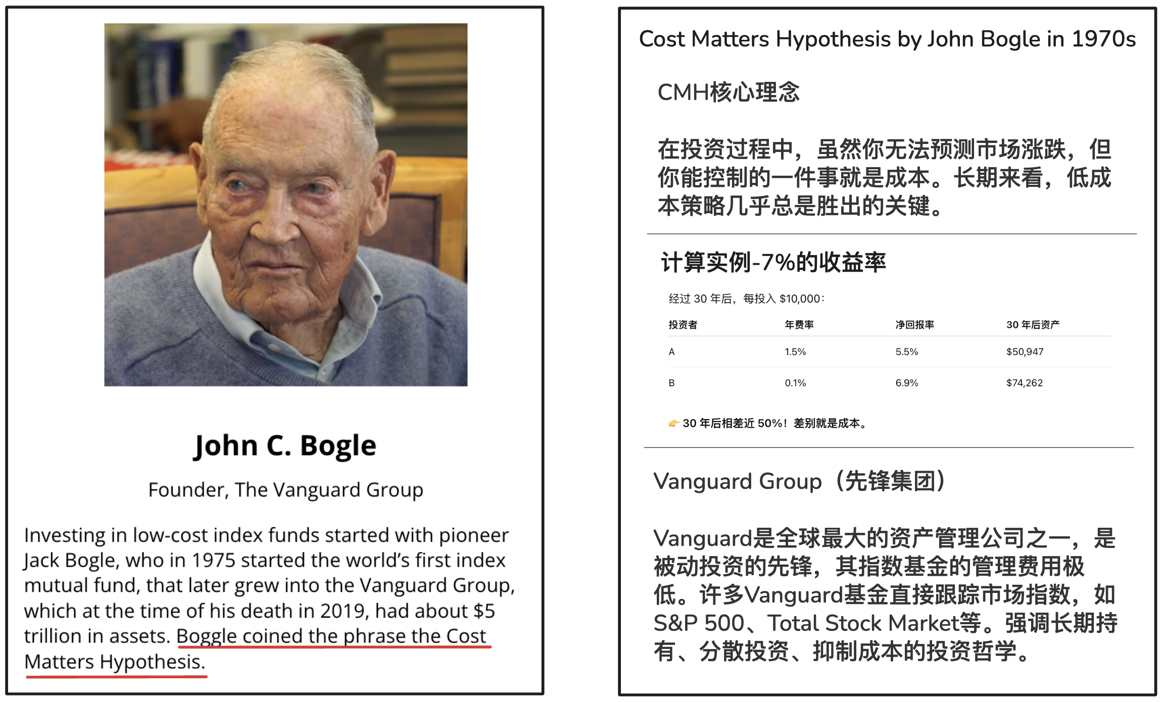 John Bogle在70年代提出的理论,并创建Vanguard Fund (先锋集团投资基金)。