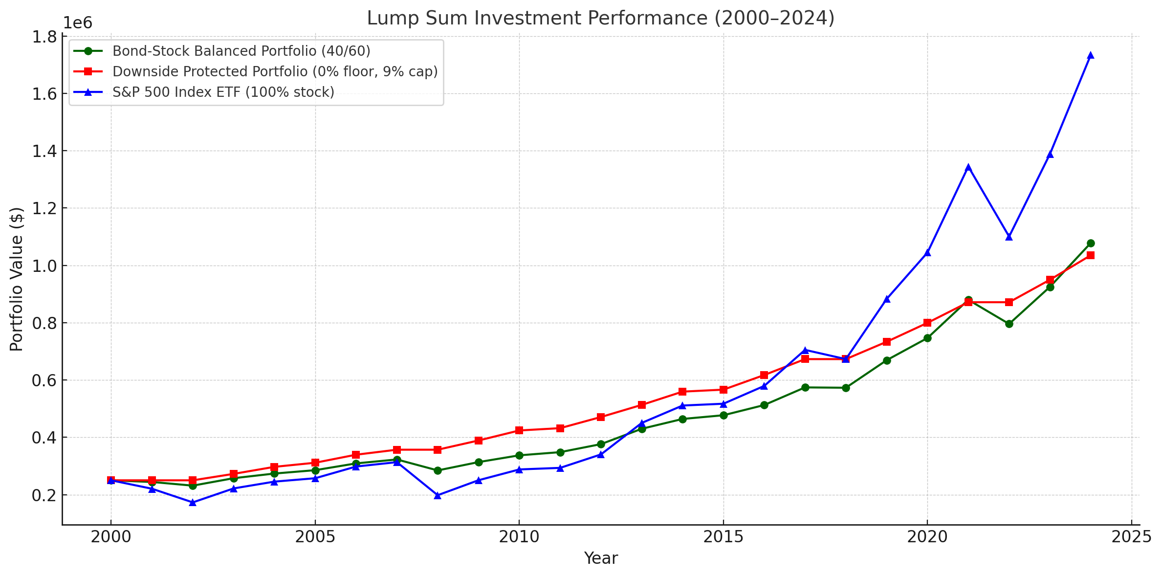 def plog_data(title, df_sp500, df_downside_protected, df_bond_balanced):