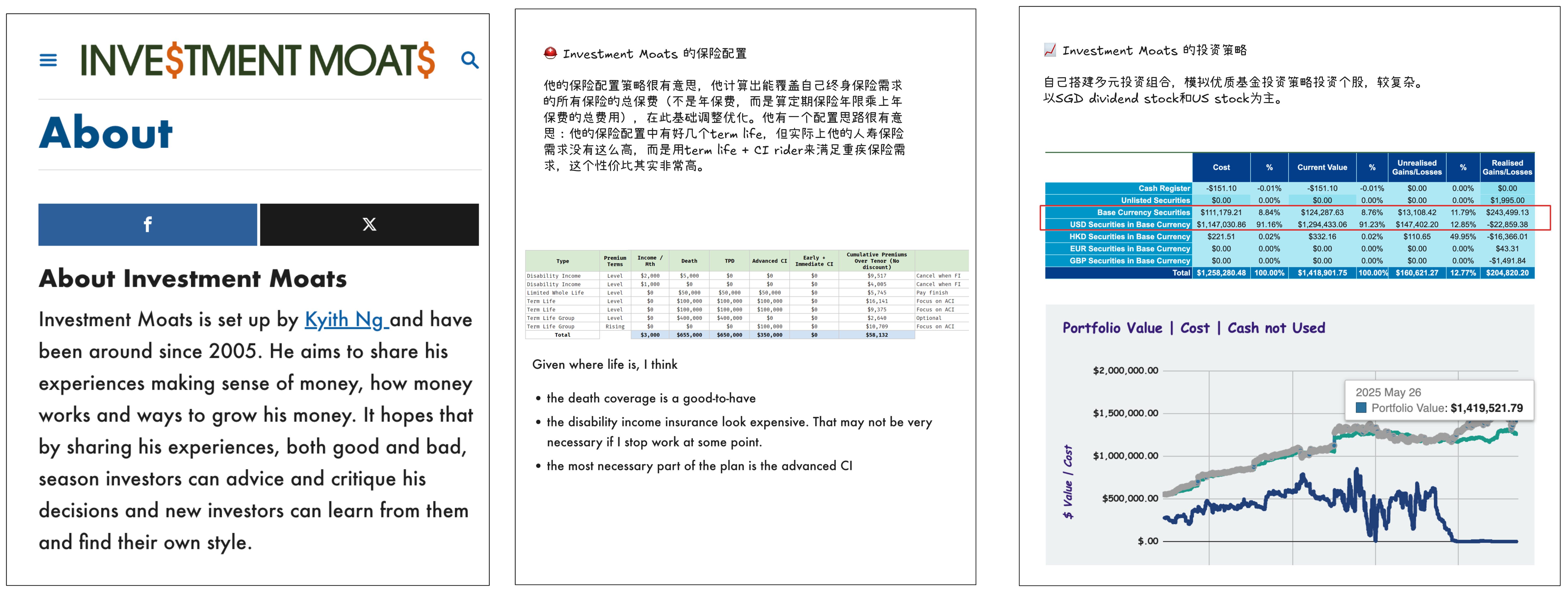 学习投资理财时,本地Finfluencers是一个非常实用的渠道。相比视频,我更喜欢看文字内容,因此关注了几位值得推荐的博客作者。他们大多公开自己的财务状况,包括收入、支出和投资配置,内容透明且中立,具有一定的说服力。当然,每个人的投资偏好和价值观不同,所有观点不能全盘接收。