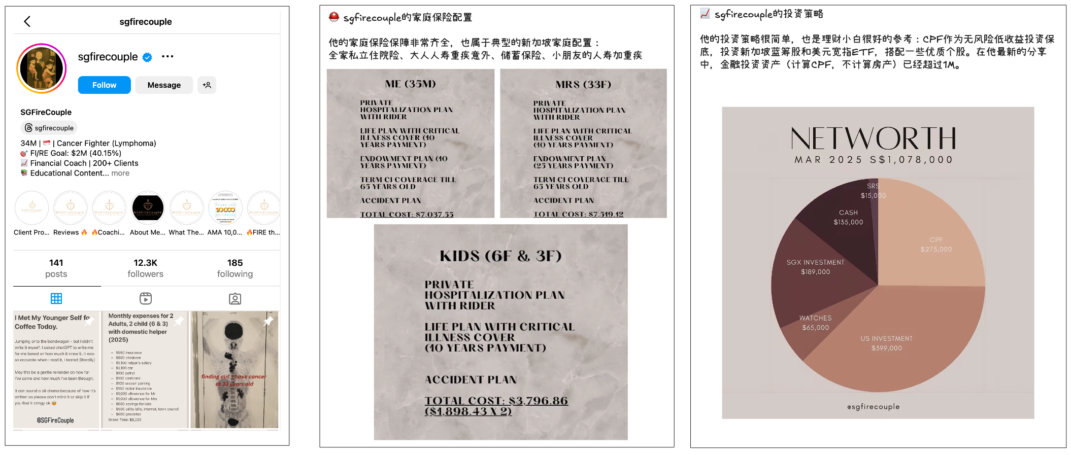 sgfirecouple是一个匿名账号,主要在Instagram和🍋分享内容。基本信息:34岁,曾从事科技销售(已裸辞),有两个女儿,是淋巴癌患者。我关注他是因为偶然看到他分享抗癌经历。他的内容非常接地气,包括每月收入支出明细、投资配置、理财观念等。