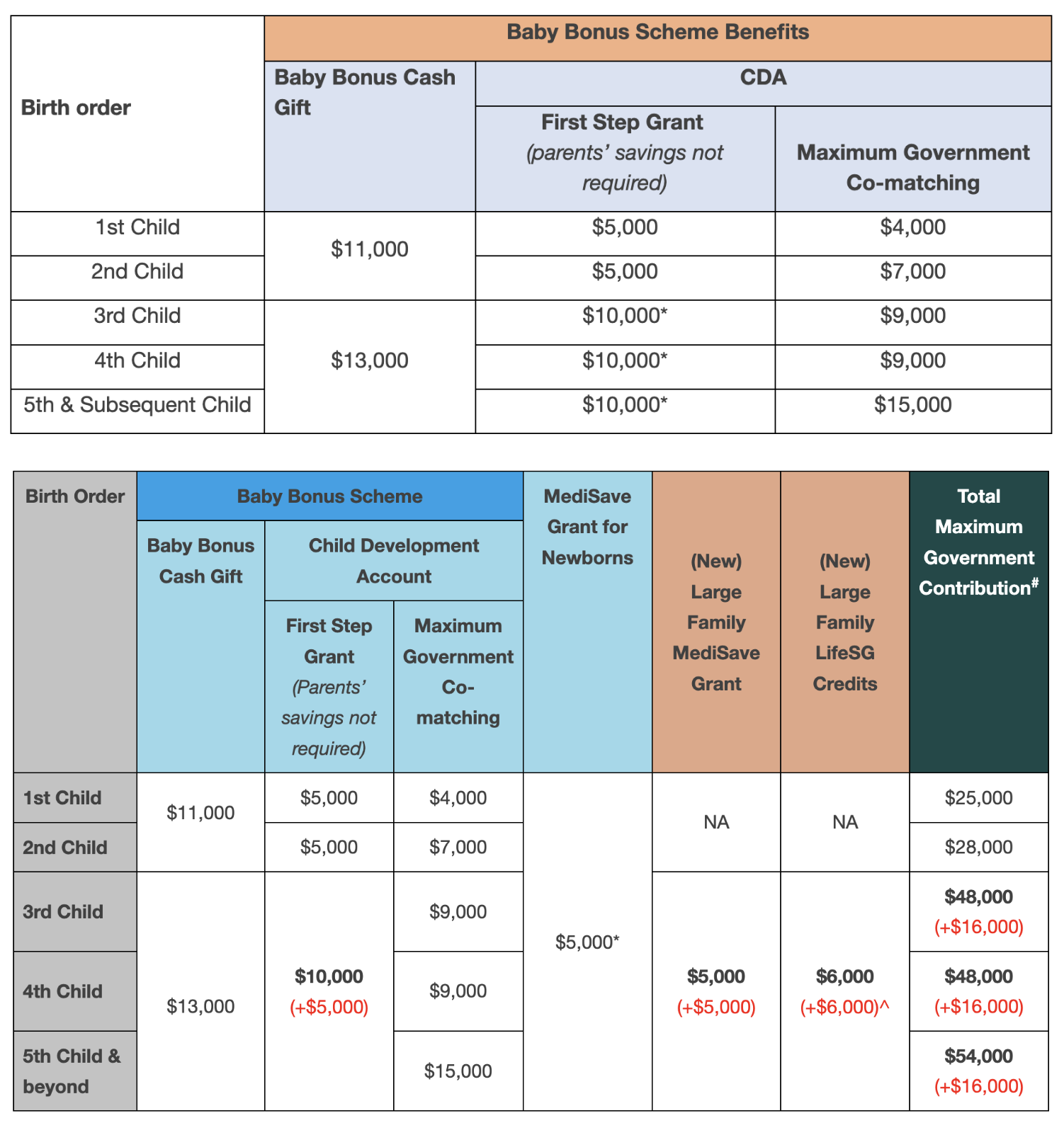 *三胎及以上家庭可享每年$1,000LifeSG补助(至6岁共$6,000)