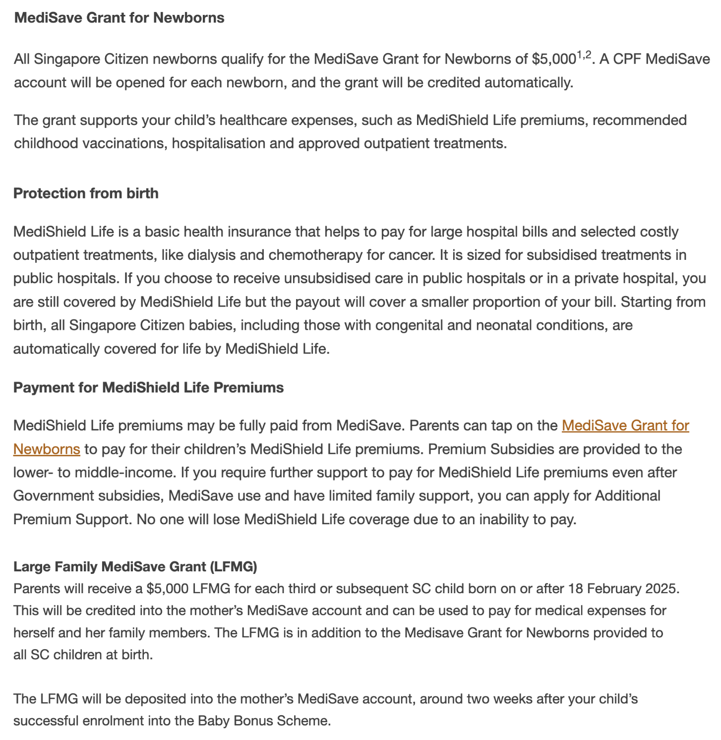 *三胎及以上家庭可享额外$5,000MediSave补助(妈妈的MA充值)