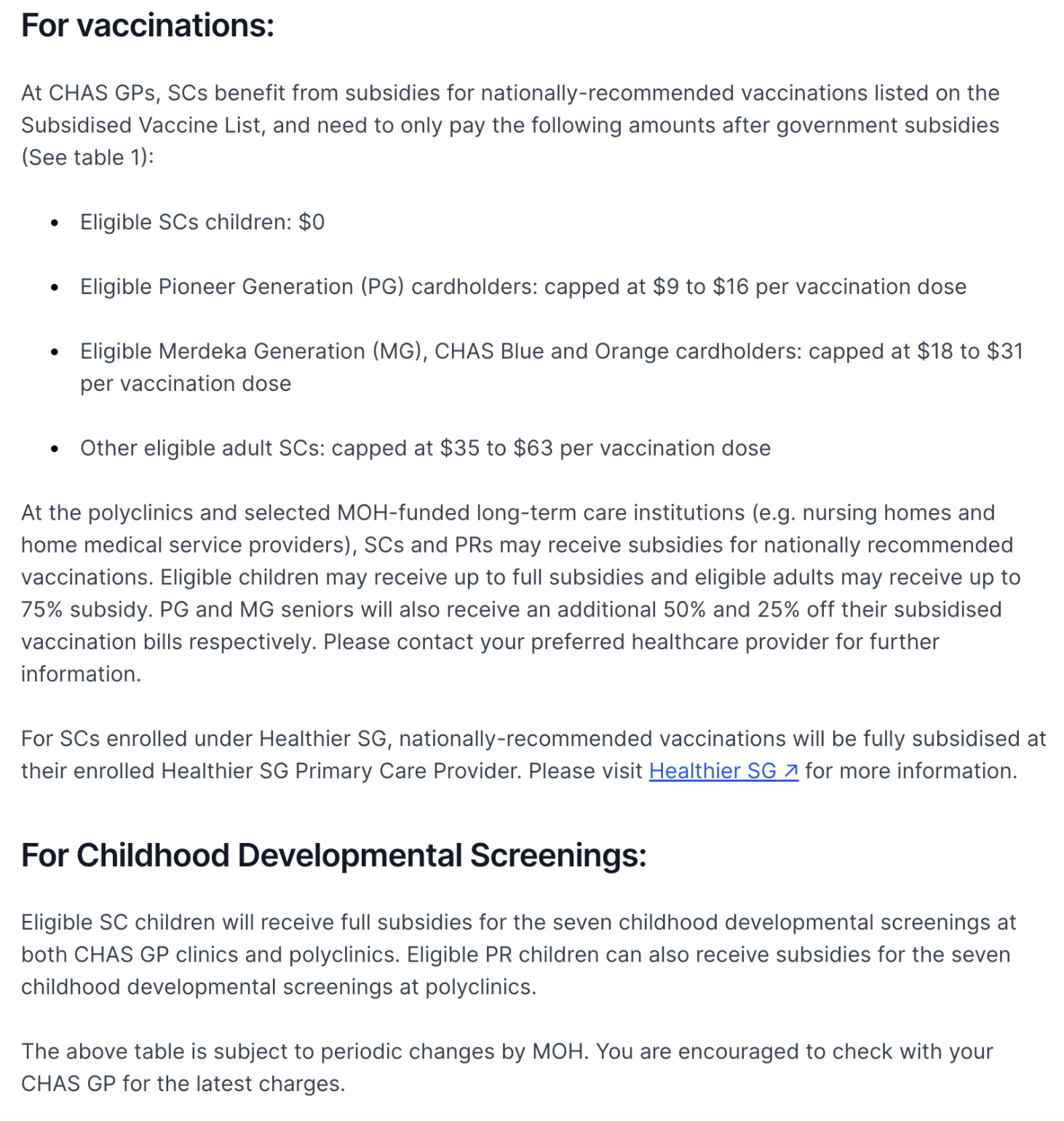 推荐疫苗补贴:在polyclinics或参与机构,合资格儿童可获最高100%补贴。