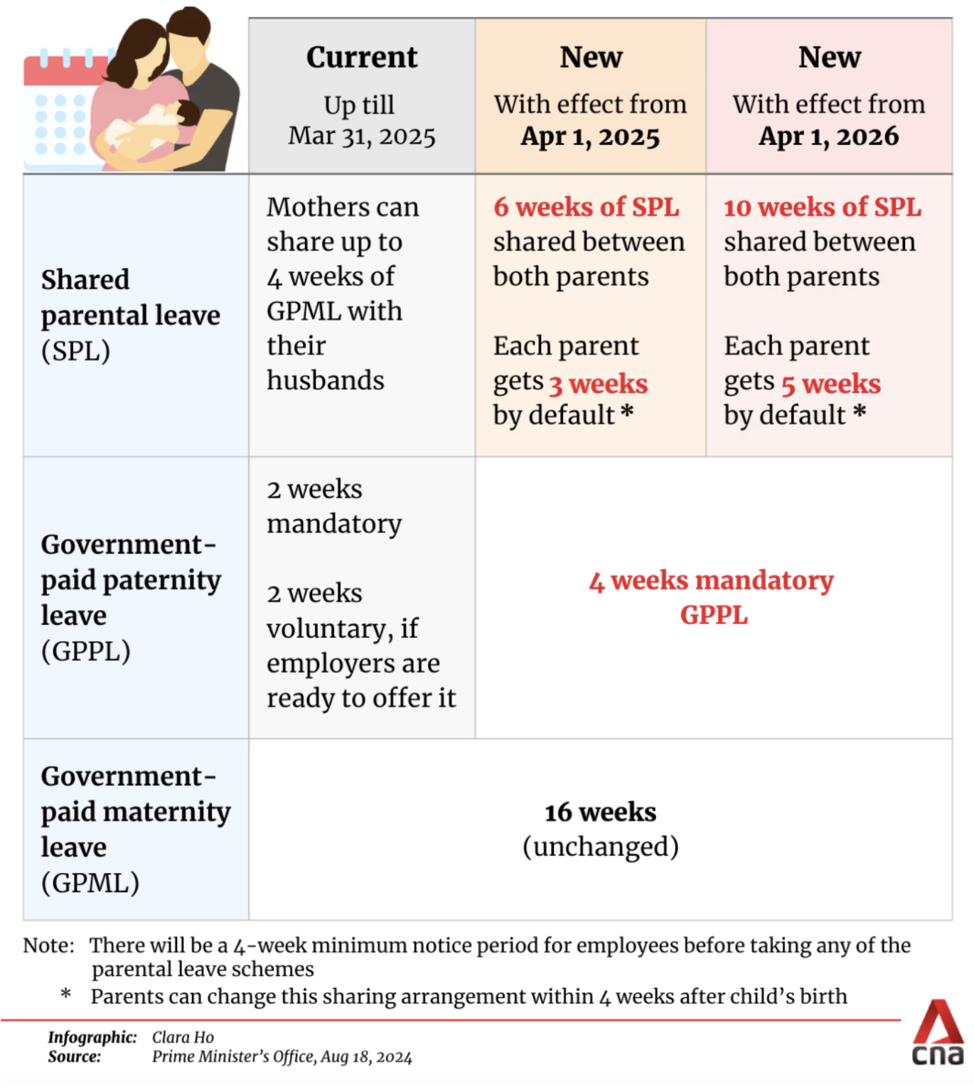 妈妈16周带薪产假:政府报销8周或16周(三胎及以上)薪水(上限$2,500/周) 爸爸4周带薪陪产假:政府报销全部4周薪水(上限$2,500/周) 额外6周父母共享产假:政府报销全部6周薪水(上限$2,500/周,2026年4月起提高至10周)