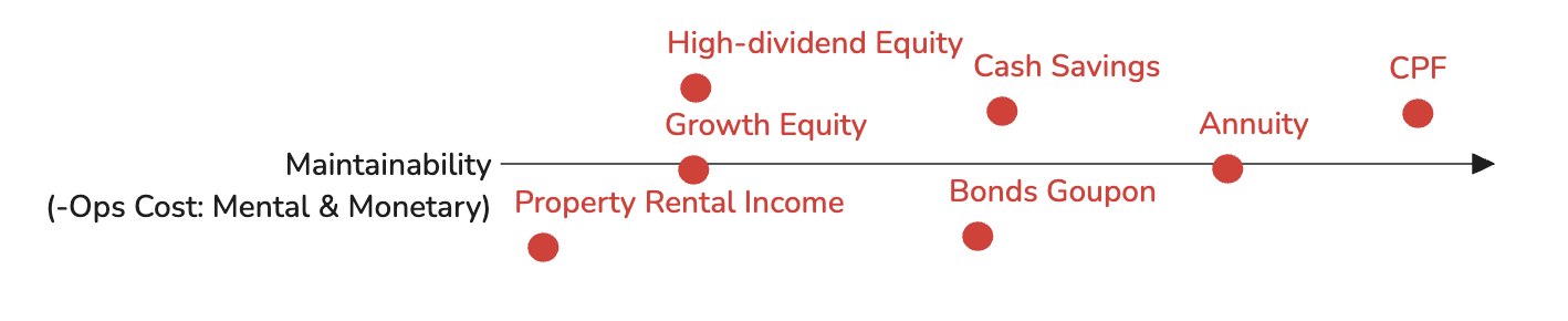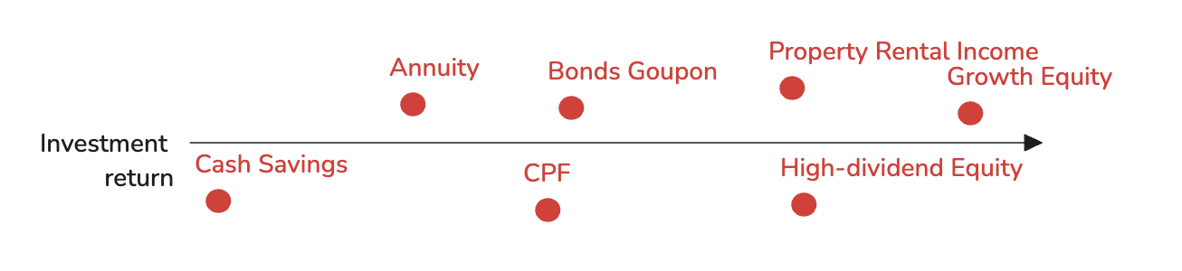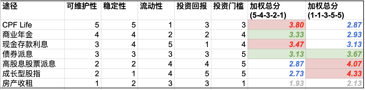 | CPF LIFE | CPF LIFE年金有政府背书,提供终身现金流,维护成本是最低的 | 5 |